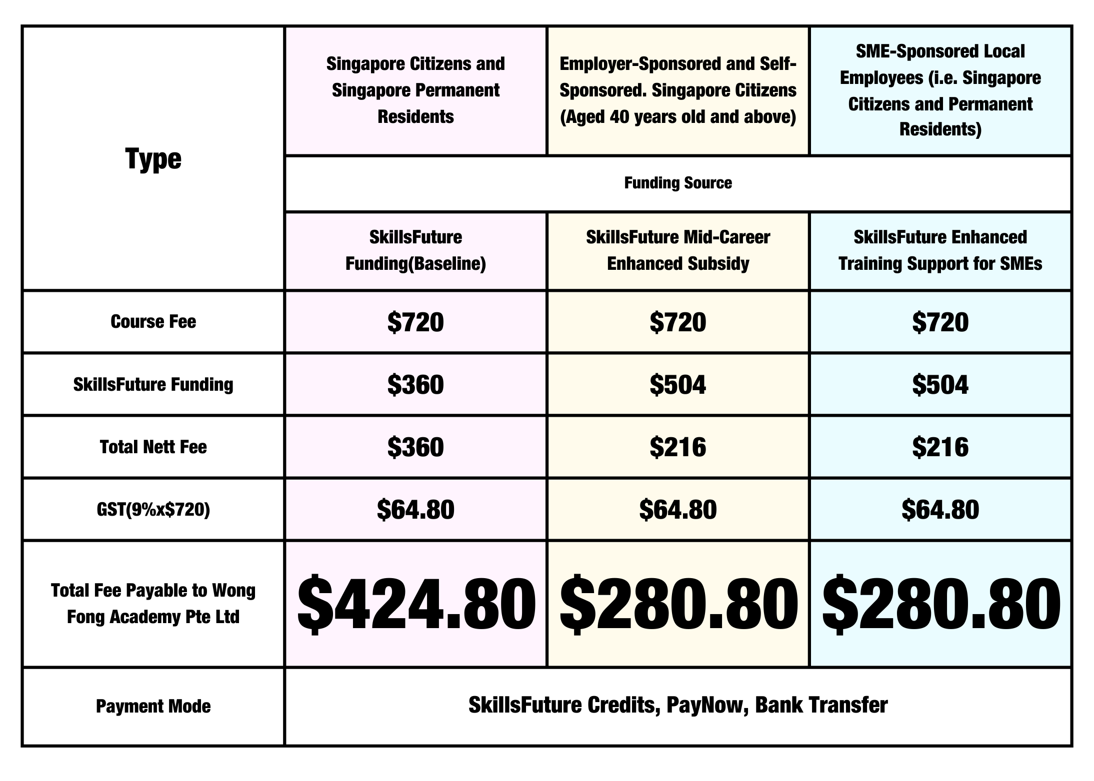 *From 1 Jan 2022, SkillsFuture course funding will be revised to a baseline of 50% subsidy, with an additional 20% subsidy (up to 70% subsidy) for SMEs and Mid-career individuals (Singapore citizens above 40 years old). Do note that the funding amount advised is not final and is subject to changes.